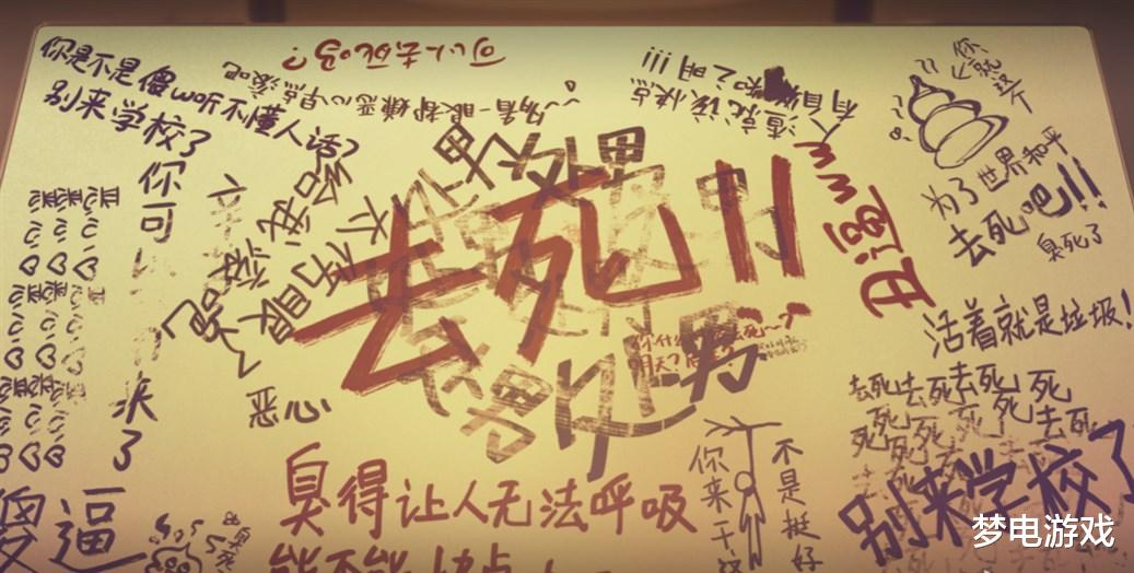 而当每个同学、老师看似表面上的关心,背地里却暗自咒骂“恶心的蛆虫快消失”“丑八怪快去死”等数十条扭曲恐怖的心里独白在屏幕中疯狂繁衍时,逐渐在催生男主复仇的欲望。而压死骆驼的最后一根稻草则是自己暗恋的女生接近自己甚至表白的原因仅仅是为了避免自己成为班级最底层被霸凌的对象,这一刻彻底改变了男主。