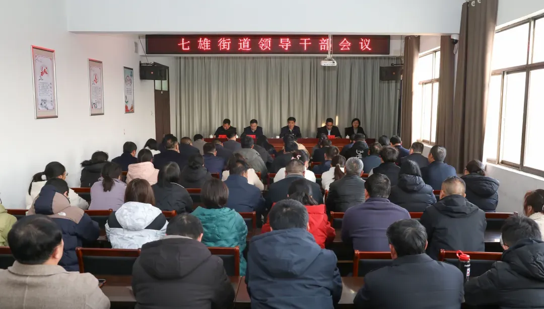 2024年3月9日,沭阳县七雄街道召开领导干部会议,宣布七雄街道党工委主要负责同志调整决定,彭伟出席会议并讲话,指出七雄街道要顶着压力上、迎着困难冲,苦干实干、大干快干,确保高质量发展综合考核提升位次,强调七雄街道毗邻经开区,要自觉担起责任使命、争做排头,头版头条抓招商,积极有序抓保障,全力以赴抓服务。同时,要坚持关口前移、重心下移、源头治理,抓牢安全生产,维护社会稳定,严守纪律规矩,真正做到想干事、能干事、干成事、不出事。