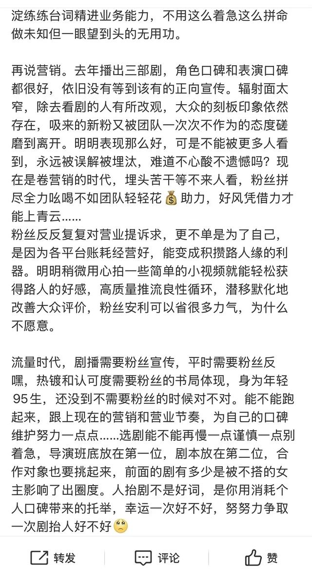 虽说他又不是流量,也不吃流量这碗饭,但是真的,粉丝积压太多情绪了,所以这次全是崩溃的,要脱粉的。他从延禧后虽然拍戏没停过,但大部分拍的都是烂片,不如不拍。好一点的剧本都没几个,再加上团队又废又不会运营平常营销又少经纪人又没用,时间累积下来粉丝都心累也失望了。