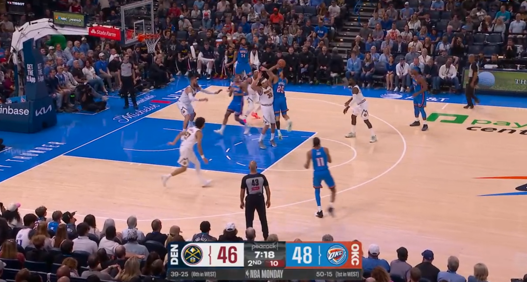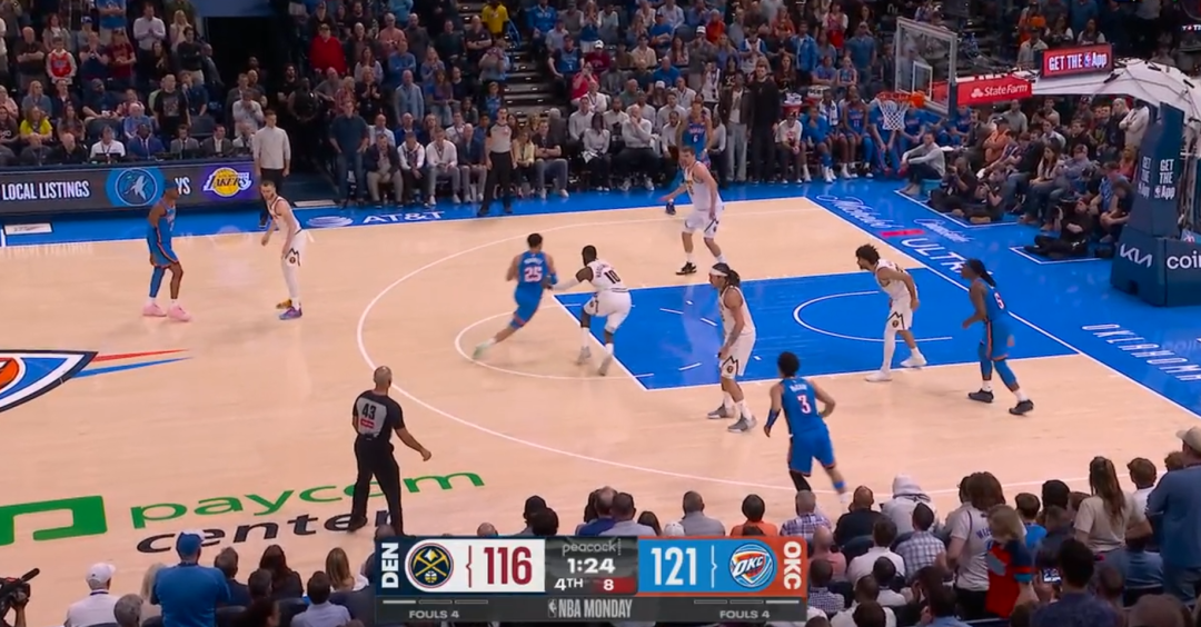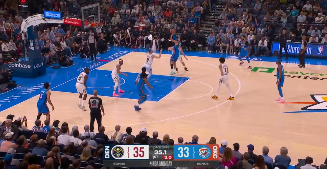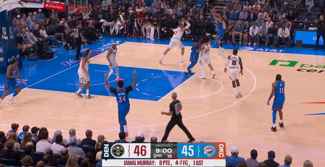 直至亚历山大将米切尔替换下来之前,雷霆已经以51-46反超掘金——也就是说,从第一节被换上场到第二节被换下场,米切尔连续在场的这13分钟里,雷霆打了掘金一波43-24。