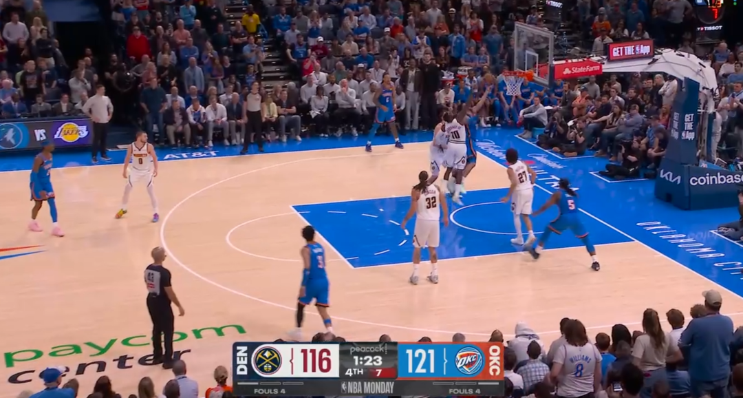 第四节最后时刻,面对约基奇的强烈攻势(连拿9分带队追平),亚历山大用两记三分终结了比赛,也可能终结了本赛季的MVP悬念。