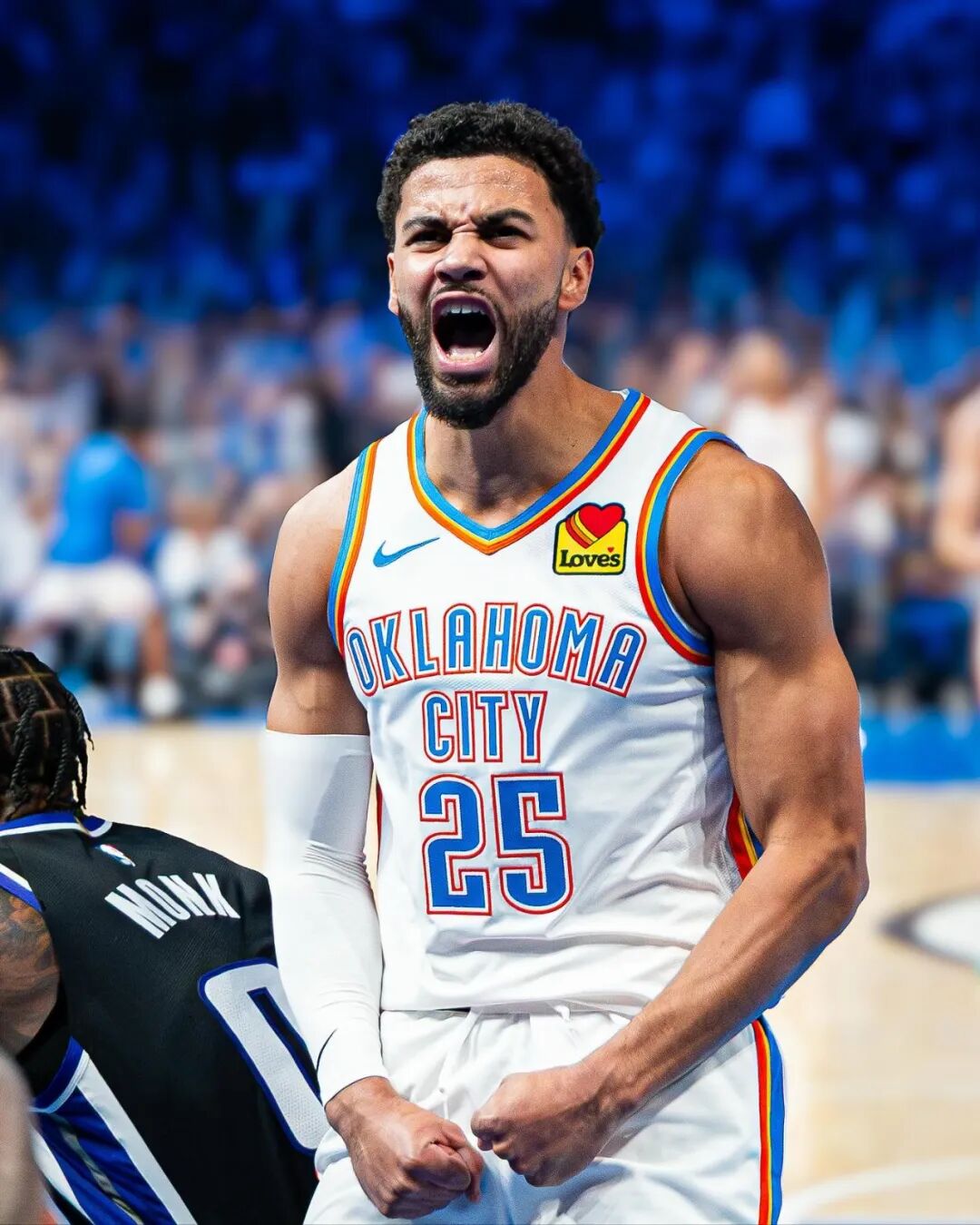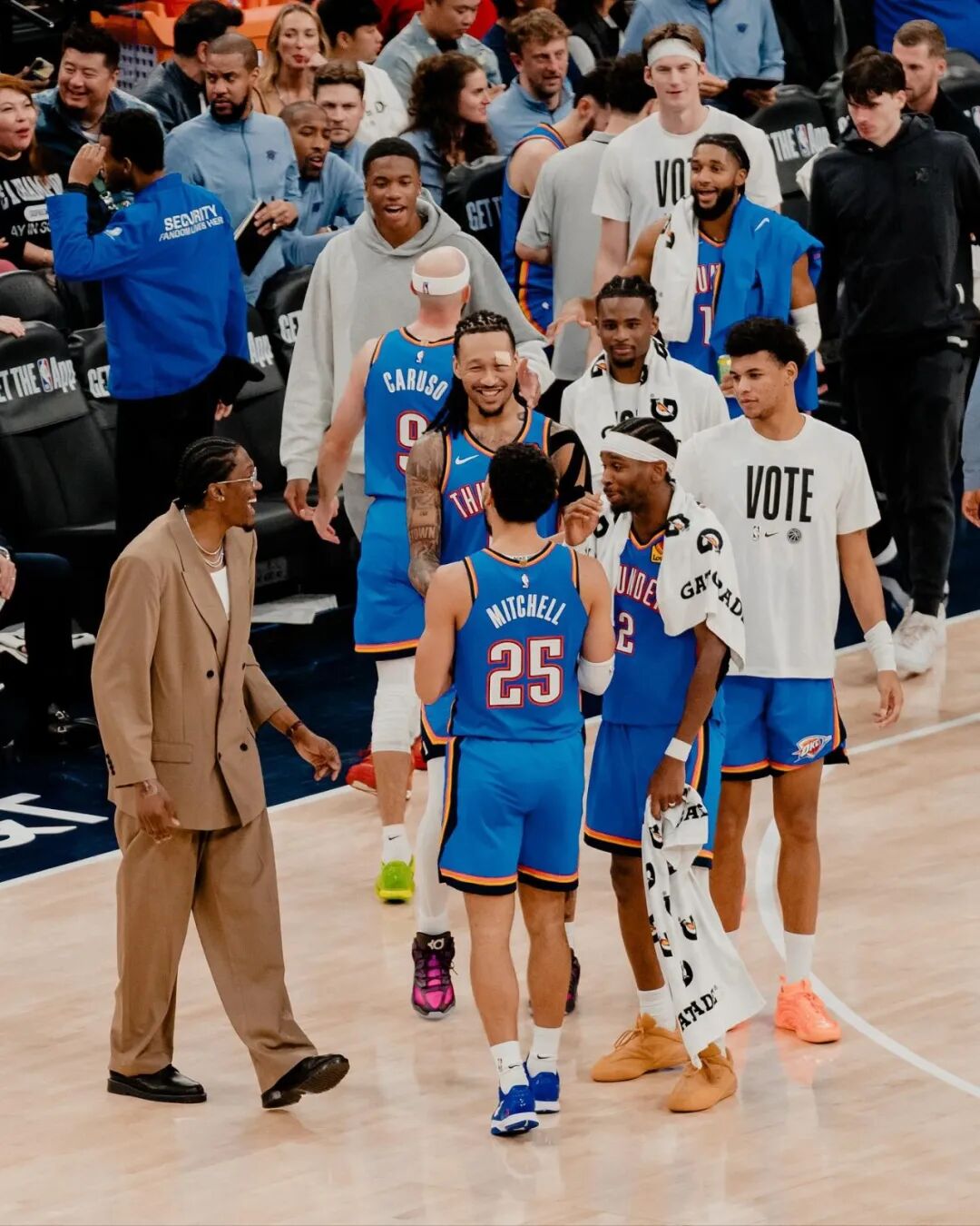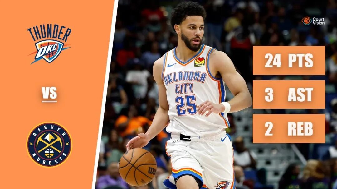 在因为髋部受伤缺席了一个半月后,本场比赛,米切尔迎来了复出(雷霆传统,专门挑打掘金复出),然后他替补登场了29分钟,投篮16中9,三分4中1,罚球5中5,拿下24分2篮板3助攻1抢断0失误。