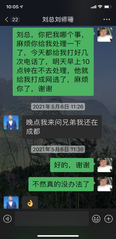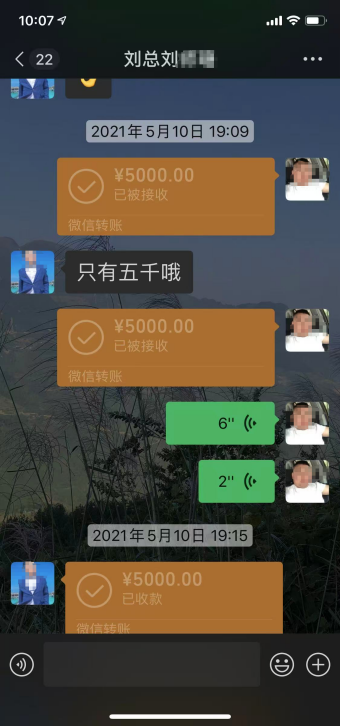 那些天我像热锅上的蚂蚁,既不敢催得太紧,又忍不住一遍遍看手机。5月8号通话后,他说“打点还差火候”,我又乖乖转去5000。