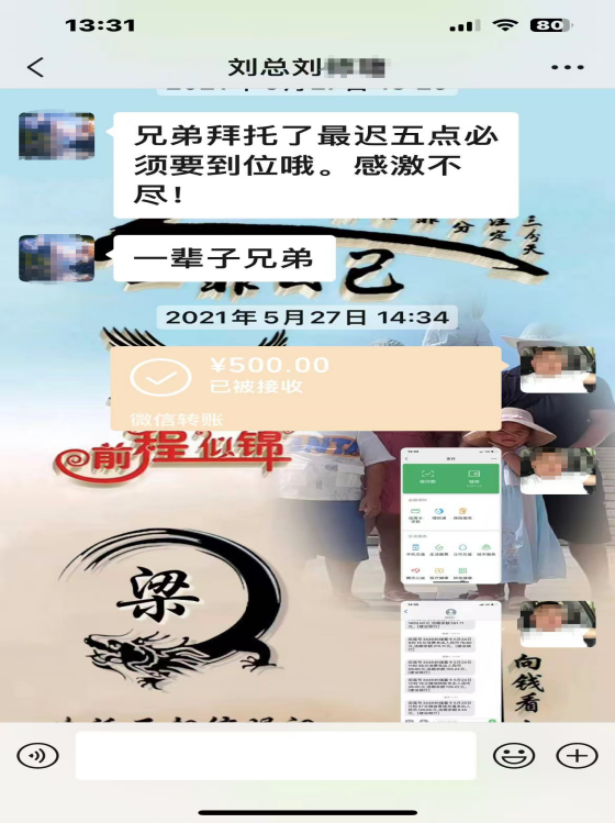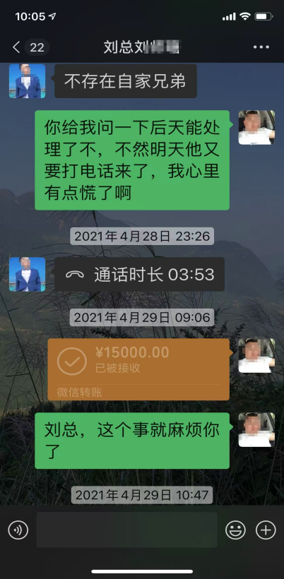 2021年4月28日,我加上了这位“刘大哥”,第二天就转去15000块。他在电话里拍得胸脯震天响:“兄弟放心,包在我身上。