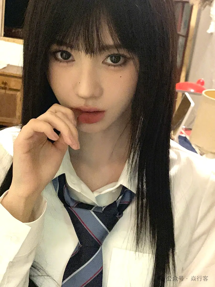 2025年5月6日,鞠婧祎一组学院风制服写真引爆社交平台。照片中,她身着白色衬衣,带藏蓝格纹领带,搭配酒红百褶短裙,黑发齐刘海随动作扬起俏皮弧度,在甜美与酷飒间自由切换,将学院风美学推向新高度。