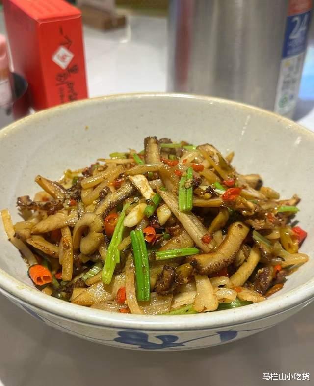酸萝卜炒毛肚:里面的酸萝卜脆爽,直接和切丝的牛毛肚一起炒,锅气十足,毛肚吃起酸辣Q弹,酸萝卜脆,而开胃。