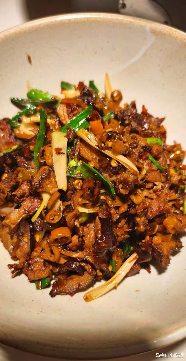 老坛辣椒肉炒肉,老坛发酵的辣椒香气十足,肥瘦相间的肉片爆炒出油,锅气拉满,开胃又解馋,家常味直接拉满。