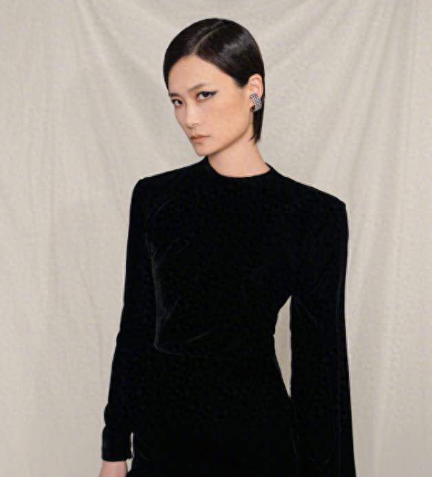 照片中的她,身着一袭简约的黑色连衣裙。