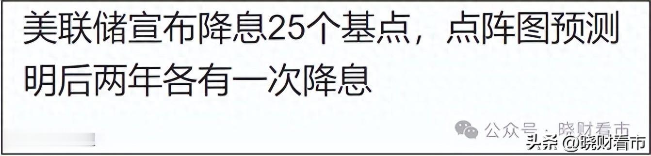 2.虽然降息了,但点阵图预计明年和后年每年仅降息一次,非常的鹰派,大幅压缩了市场对降息周期强度的预期。