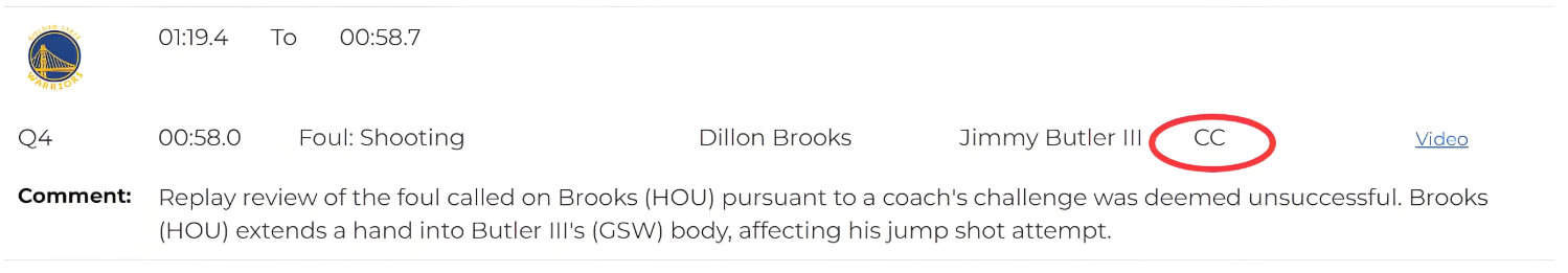 那么我们仔细看一下这几个犯规判罚争议点,就在距离比赛结束还有58秒的时候,巴特勒在底角三分出手,狄龙上前防守,高举手臂,当时被旁边的裁判吹罚犯规。火箭教练选择挑战,可惜最后挑战失败。
