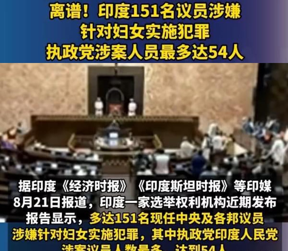 甚至有新闻曝出印度各邦有151名议员涉嫌性犯罪,其中光执政党就高达54人。