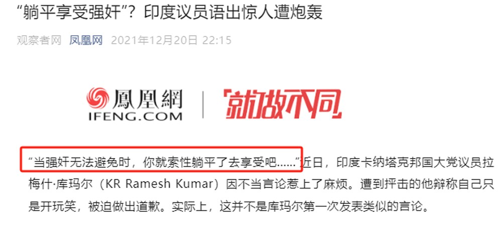 甚至还有一名印度议员,在开会间隙开玩笑说:“当强奸无法避免的时候,你就去享受吧。”
