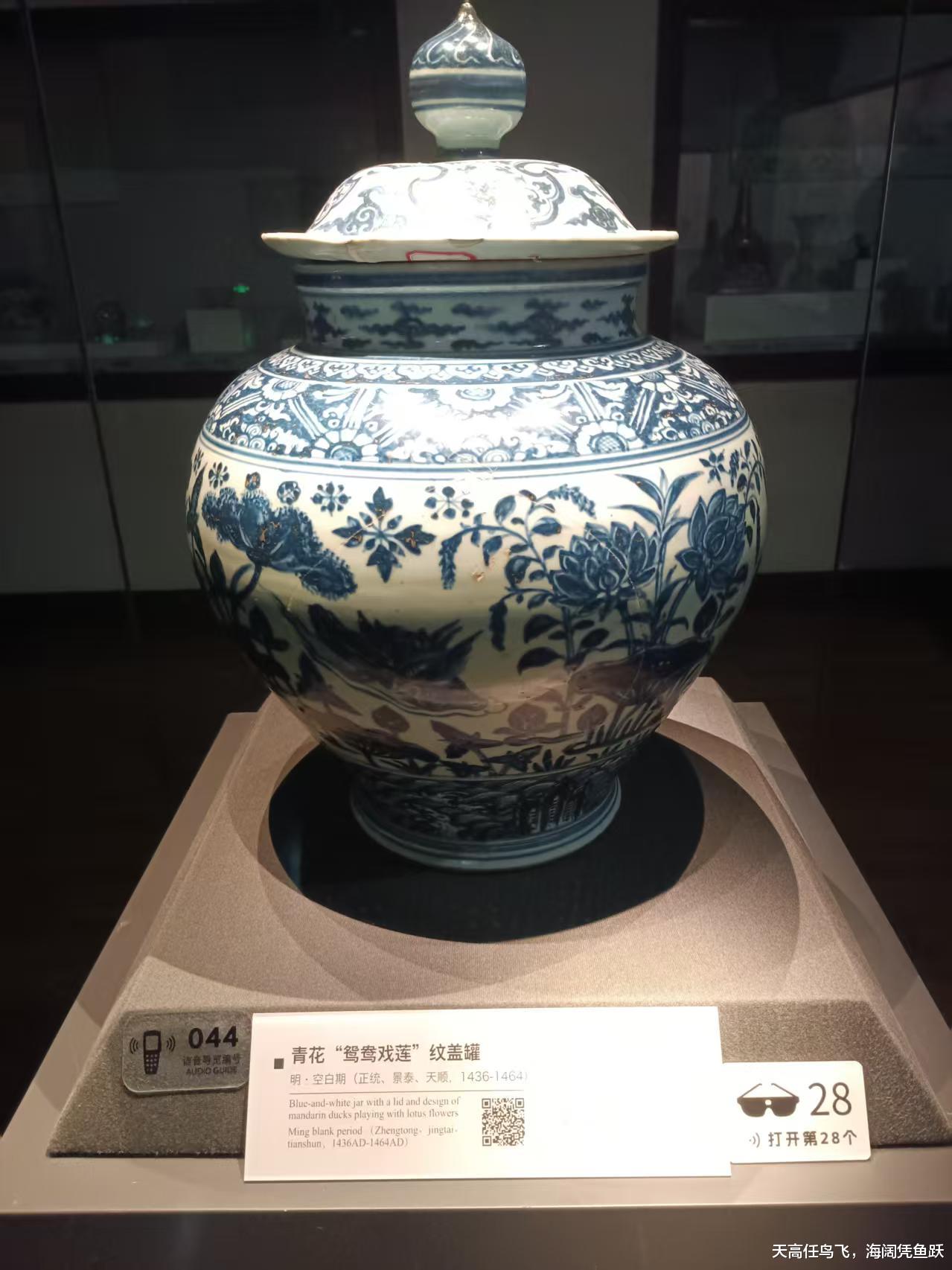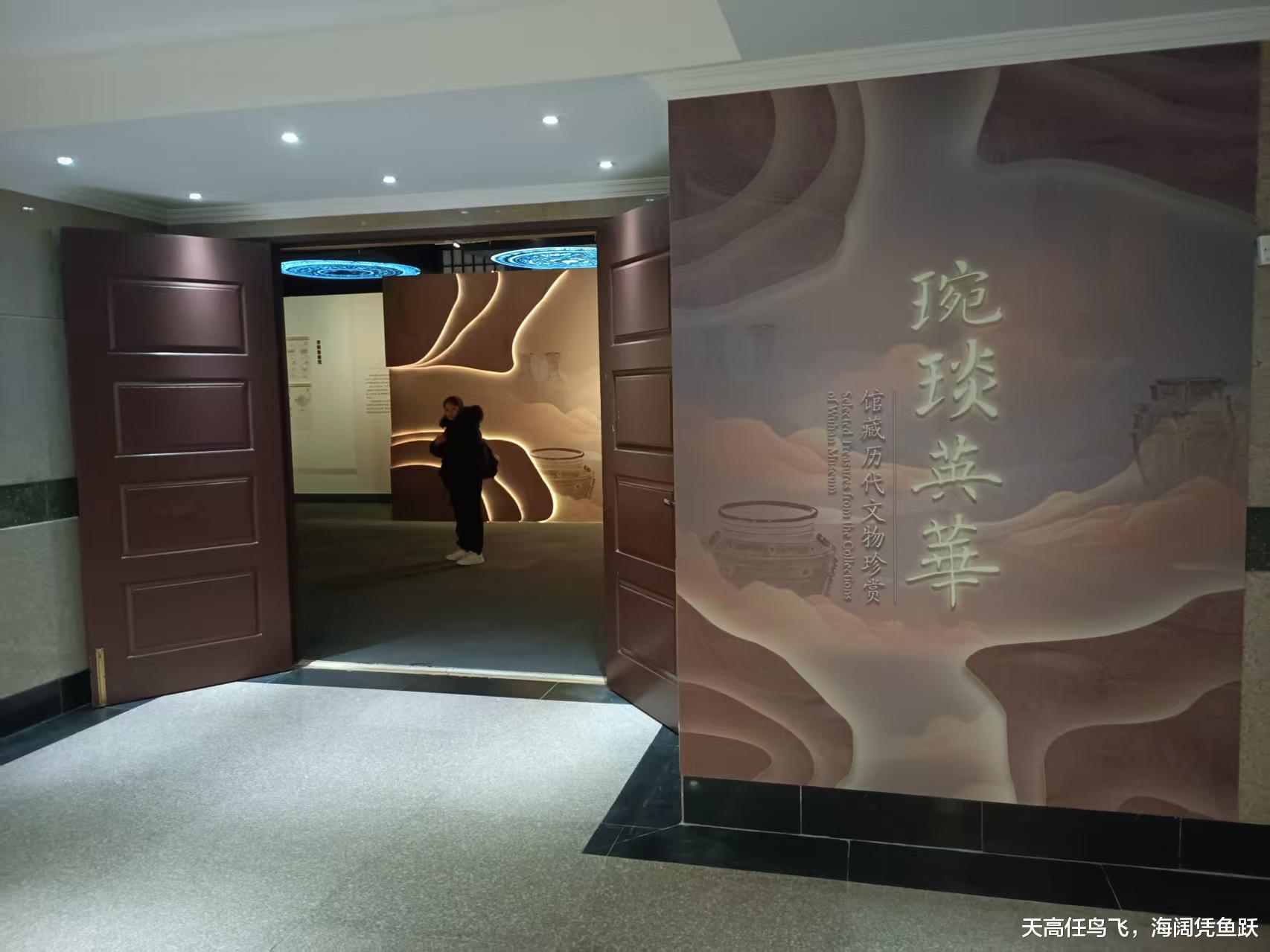 一楼第二展厅是《古代陶瓷艺术》陈列厅,展出了100余件珍贵的陶瓷文物,其中以元青花瓷最为世人所尊崇。中国陶瓷品制作也有一万多年的历史,是中华文化的象征,世界人民开始了解中国文明的伟大,有很大一部分来自于陶瓷文化的影响。在这个展厅参观,除了赞叹古人的聪明才智外,最让人叹服的是岁月的无情,连化学性质极为稳定的陶瓷制品在经过几千年后也会失色和脆裂,所以会在展区看到一些看上去七拼八凑而成的陶瓷品,实际上是专家们历经千辛万苦才修补成功的藏品。