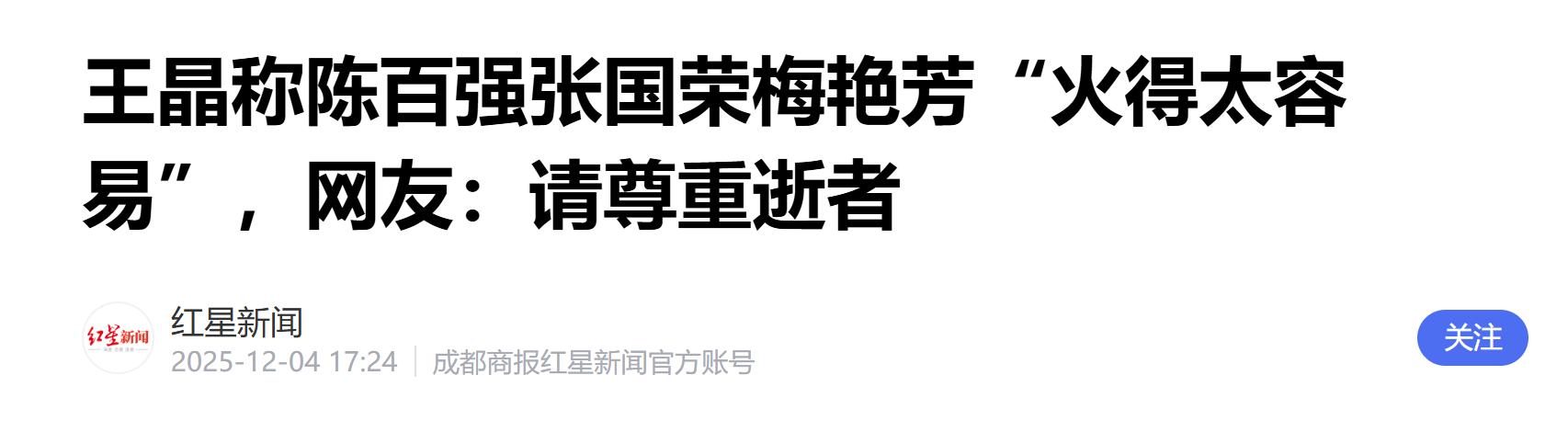 王晶称陈百强张国荣梅艳芳“火得太容易”,网友:请尊重逝者——红星新闻