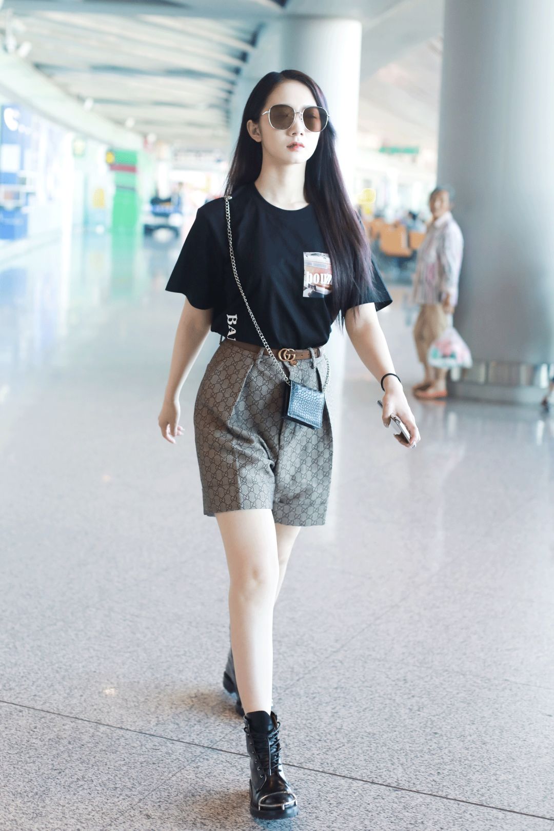 而刘雯的尖头设计则是所有马丁靴中最帅气、中性感最浓的鞋子形状,它利用鲜明的倒V字,打造一种很力量感的帅气。