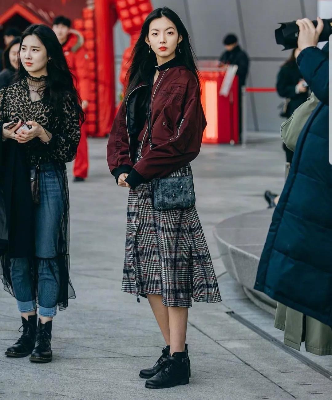 这是我发现的一种很有型,但是却不烂街的小众时髦,格纹图案的裤装或裙装,都能够轻而易举的让马丁靴更加有型。