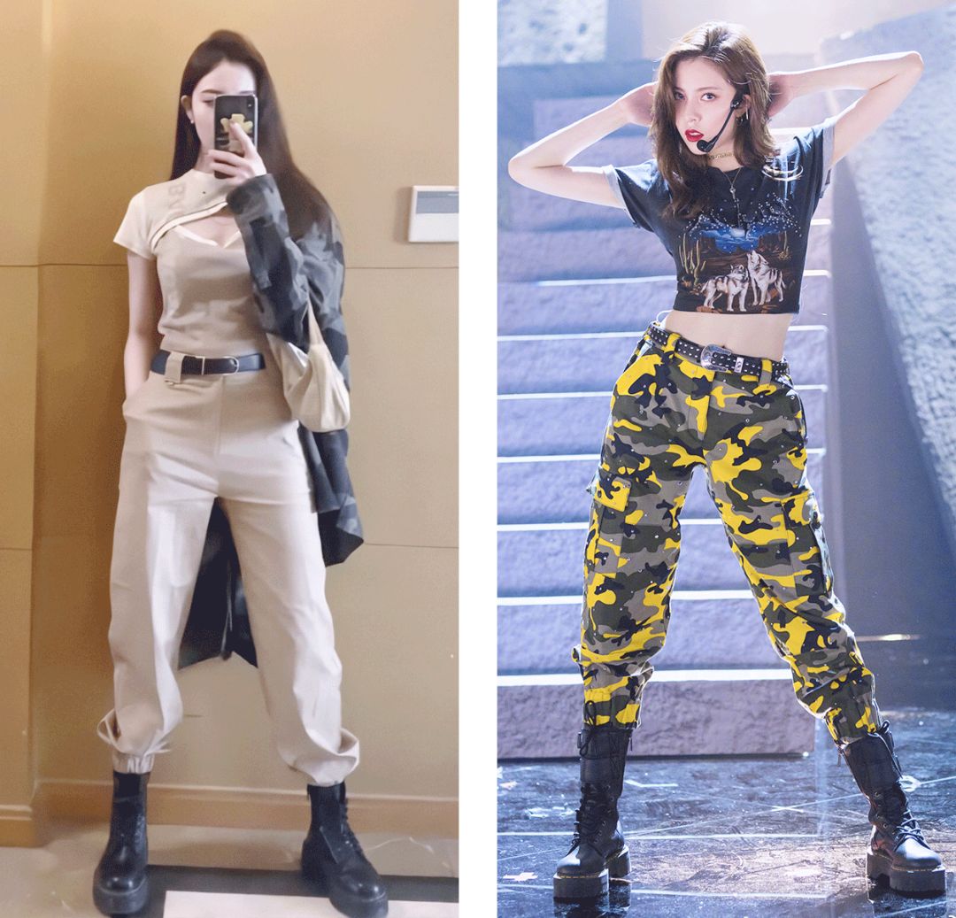 唱嘻哈的、玩街头的酷女生,常常会喜欢这种搭配风格。