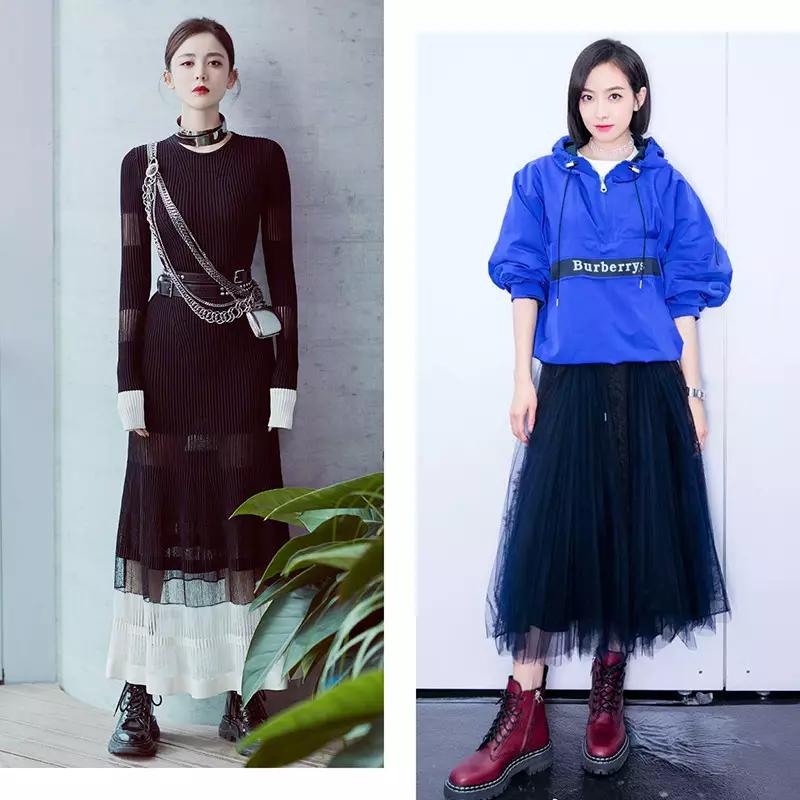 或是更建议穿着与马丁靴同色、相似色的紧身裤装,它会顺畅的连接腿部线条和脚背,让腿看起来无限修长。