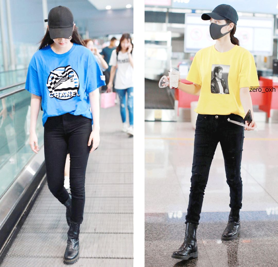或者学杨幂,裤装是非常短的裤子,上衣很长,玩下半身失踪。