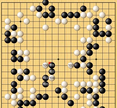白102,强行收中腹。白棋的胜率,已经不足1%。
