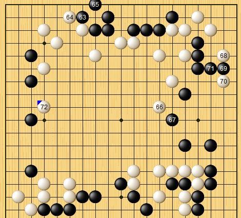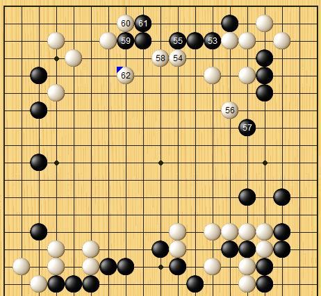 白46长,浪费了宝贵的先手。黑47分投,黑棋一下子就打开了局面。白56小飞,又是随手棋。