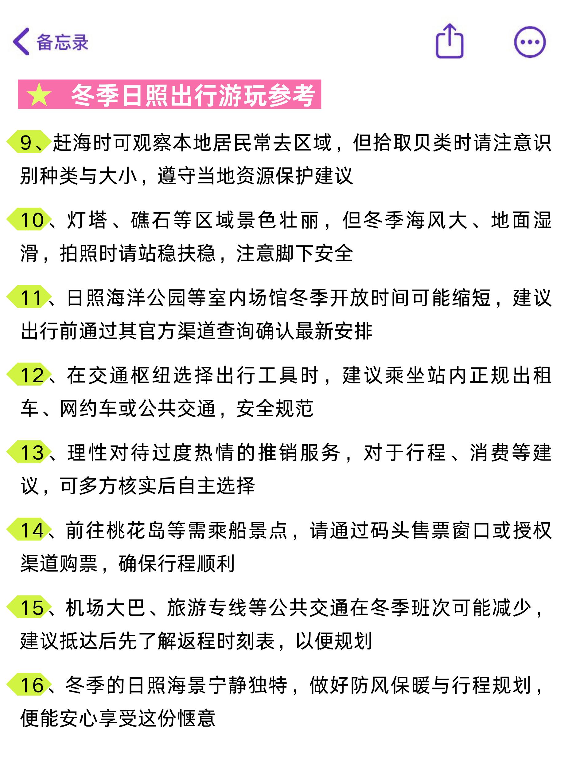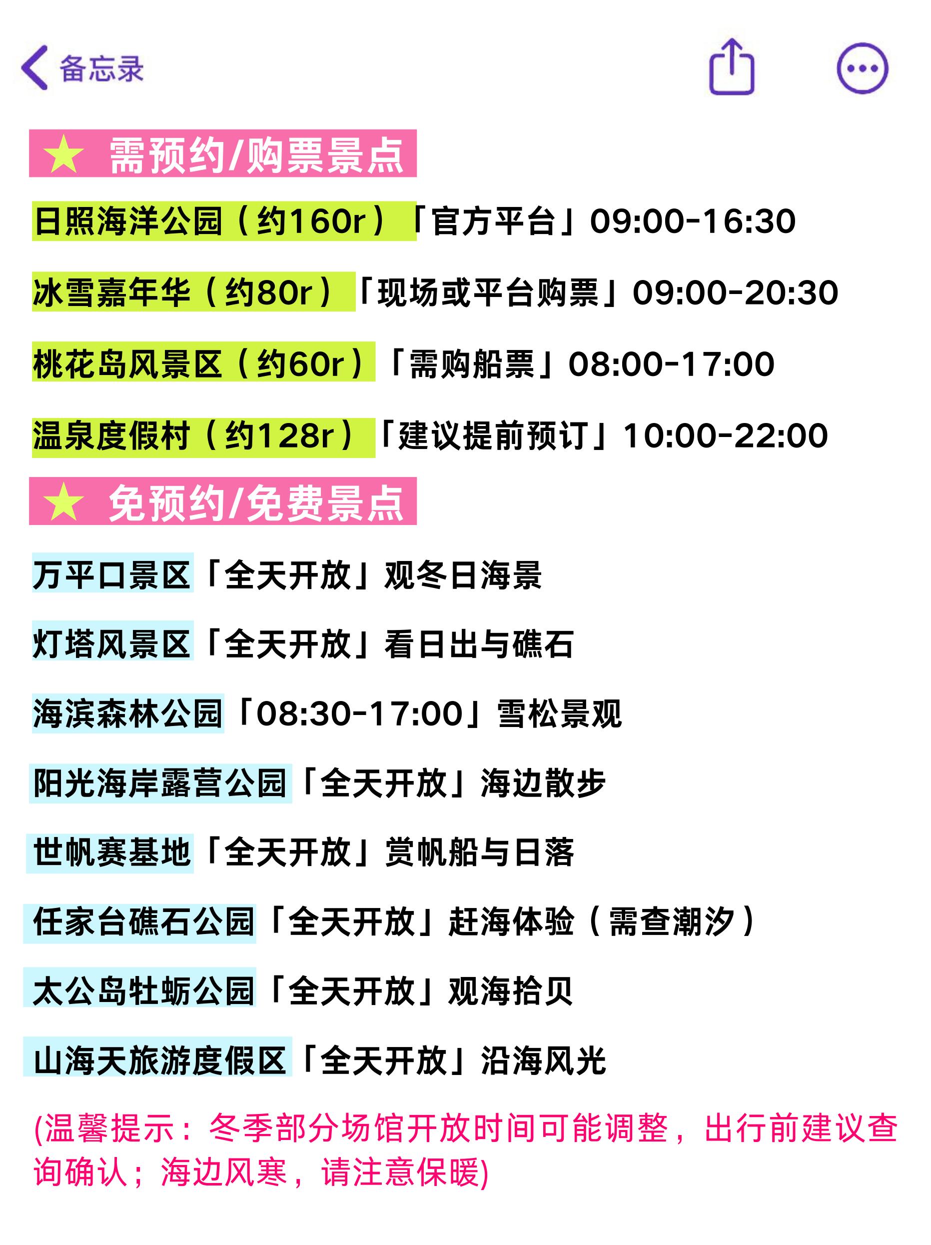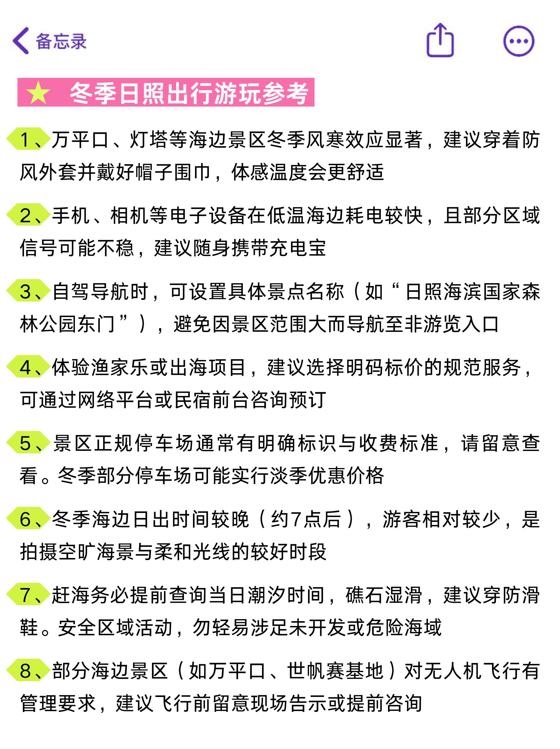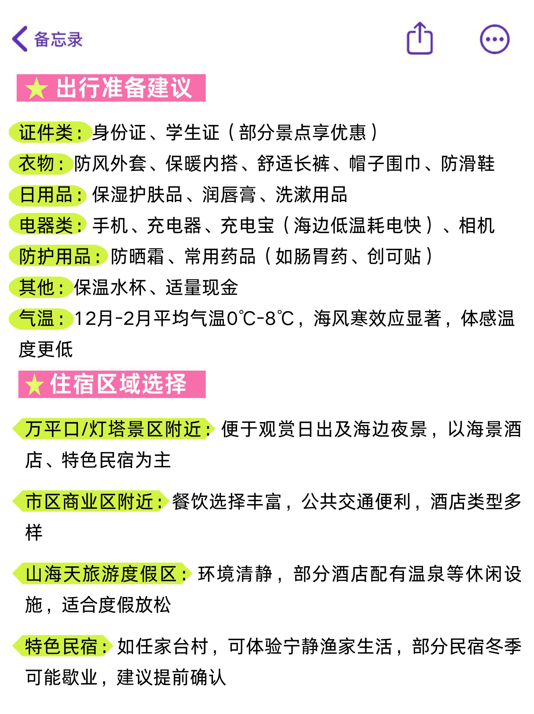 日照刚回,海风大但也确实好玩!海边天气多变,今天阳光好,明天可能就起风降温了🥶!像万平口、海滨森林公园这些区域都很大,散步看海要走不少路,大家一定要穿舒适保暖的鞋子!这次也整理了一些亲身体验,按游玩要点分好了,可以收藏参考,希望能帮到计划去的朋友!🤗