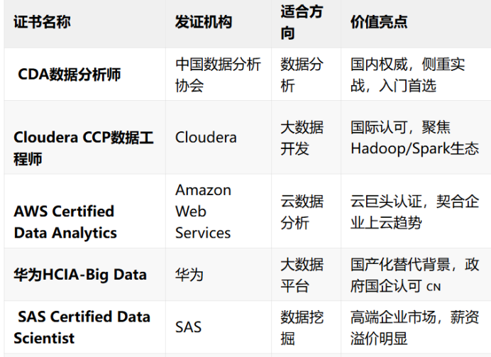 考证不仅能系统化提升技能,还能增强简历竞争力,获得企业认可。以下是适合大数据技术专业学生的8个证书: