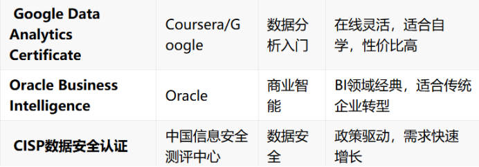 行动建议:深入学习SQL、Python、Hadoop、Spark等核心技术。与实习或项目实践,积累实战经验。考取入门级证书,夯实基础(如:CDA数据分析师)。