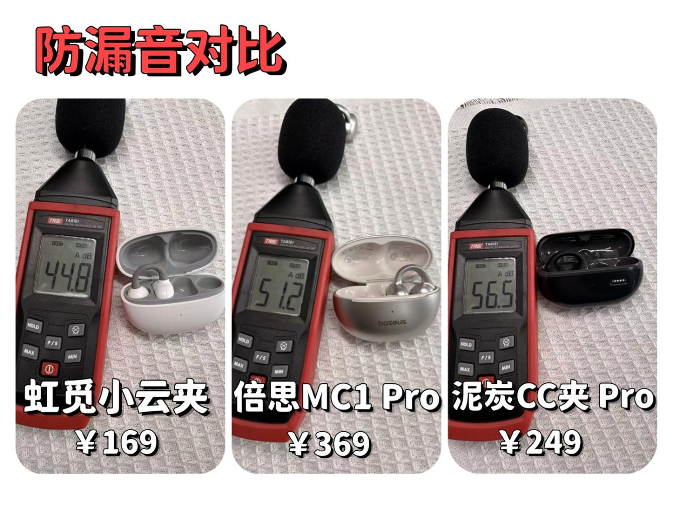 倍思 MC1 Pro 和泥炭 CC 夹 Pro只做了基础的防漏音处理,没有专属的防漏音模式。其中倍思 MC1 Pro的防漏音效果稍好一点,安静环境下基本不会有明显漏音;泥炭 CC 夹 Pro 在安静的地方会有轻微漏音,把音量适当调小后,漏音情况会改善不少,在嘈杂的户外使用,漏音问题基本可以忽略。