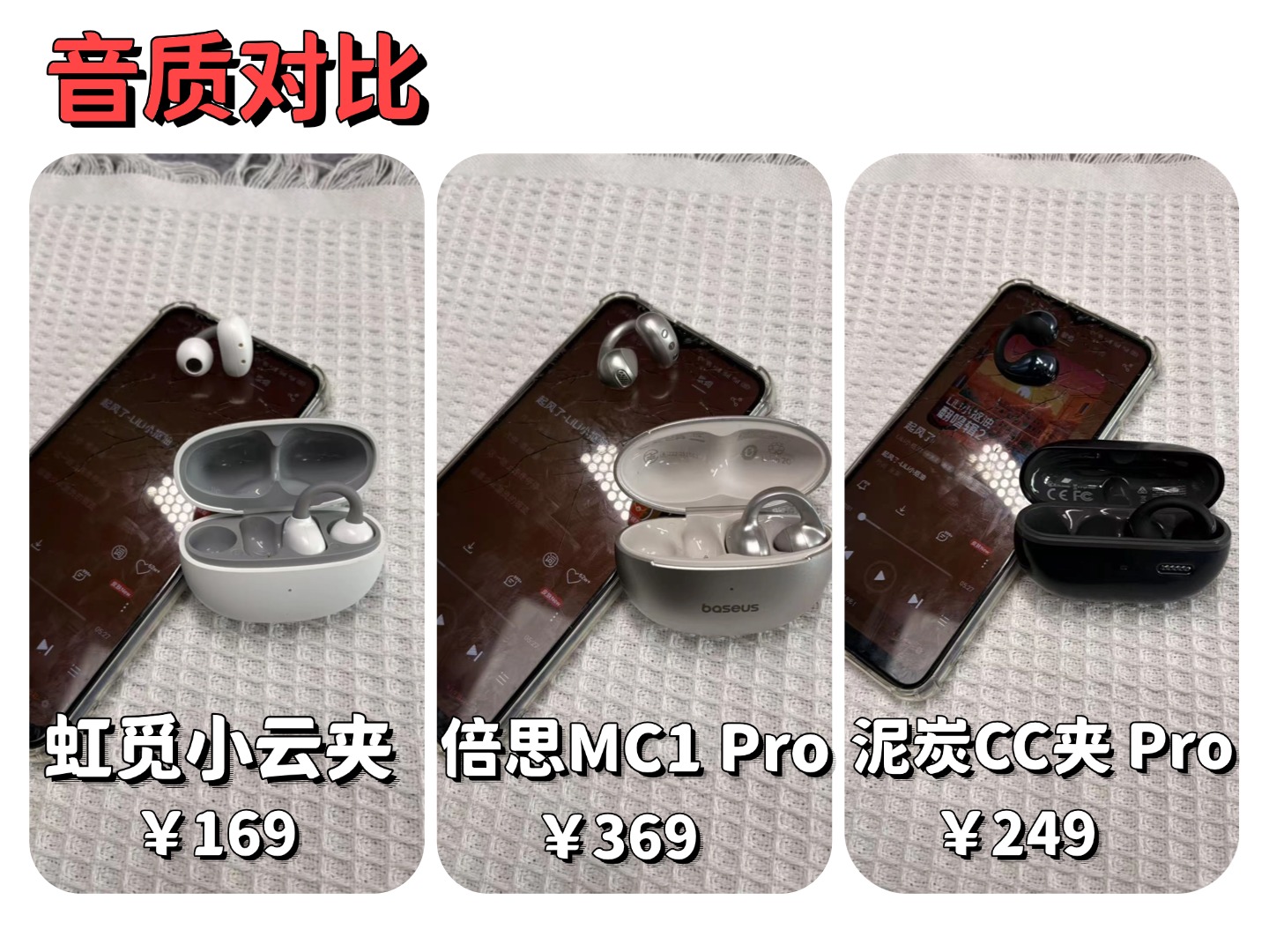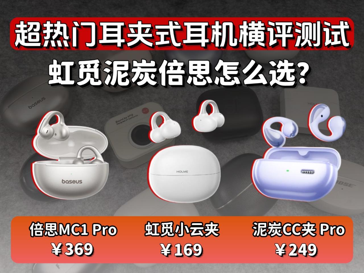 开放式的耳夹式耳机如今成了不少人的出行标配,不用入耳的设计戴起来自在,还能兼顾周围环境的声音,实用性拉满。但市面上的耳夹式耳机款式多、价位杂,低至百元高到数百元,看似配置相差无几,实际用起来的体验却天差地别,想挑到一款适配自己、不踩雷的,光看参数表根本不够用。其实选耳夹式耳机,核心就看三点:戴得舒服、用得顺手、核心体验能打,参数只是参考。这次我挑了三款百元到四百元档里口碑不错的耳夹式耳机,分别是虹觅 Air2 小云夹、泥炭 CC 夹 Pro 和倍思MC1 Pro,抛开冰冷的参数,从实际使用的感受出发,聊聊这三款耳机到底哪款更值得入手,帮大家把钱花在刀刃上。