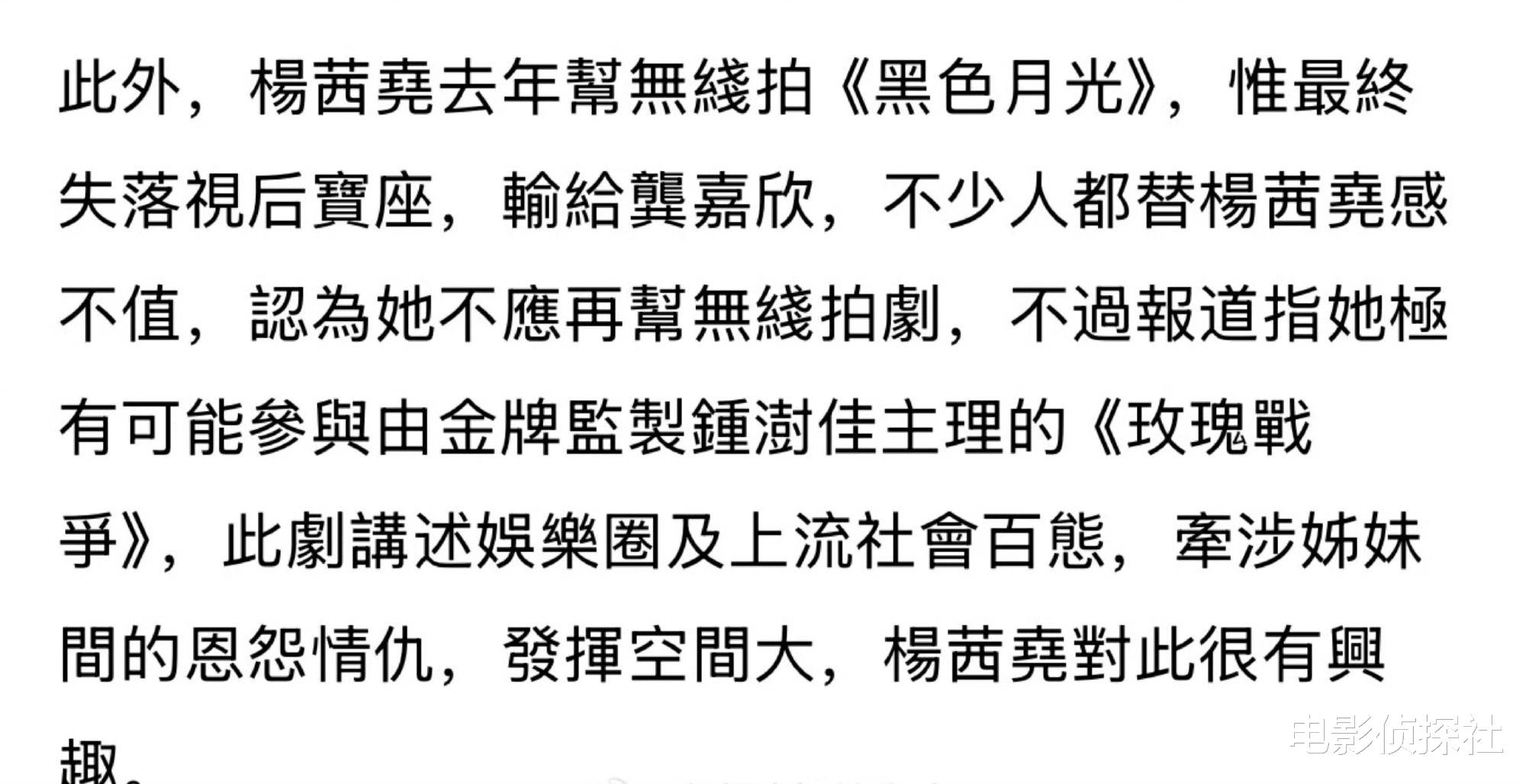 也有网友表示蔡少芬没有必要帮TVB拍戏,想想去年杨怡帮TVB拍《黑色月光》,尽管演技出色,好评如潮,但在视后的评选中,最终输给了龚嘉欣,不少人替杨怡感到不值。
