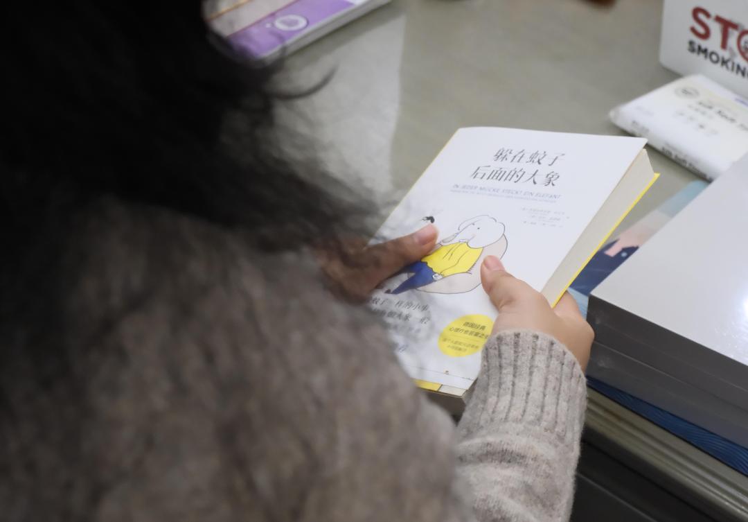 2025年12月6日,小月拿起徐凯文办公室一本与心理学有关的书。 新京报记者 郭懿萌 摄