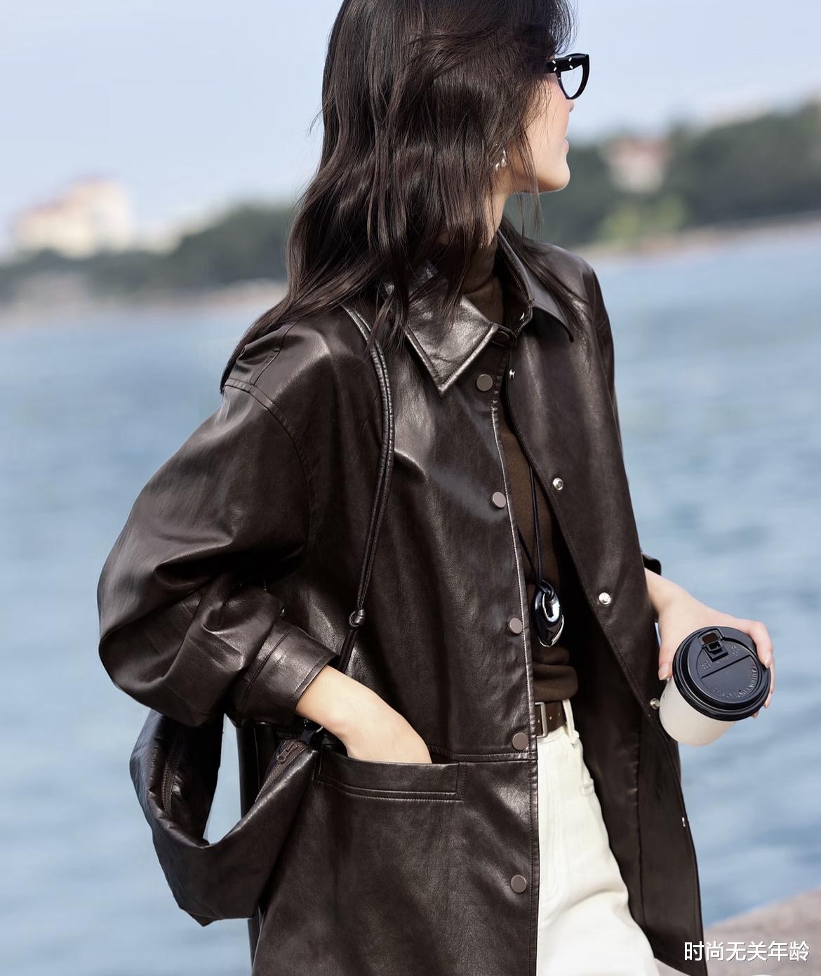 但是,也不是说棕色皮衣就完全不能搭配鲜艳的颜色。如果真的想提亮,可以选择小面积的亮色点缀,如一条亮色的丝巾或包包,或者将这些亮色用于小面积的内搭,并用中性色隔开,如白色、牛仔蓝等。