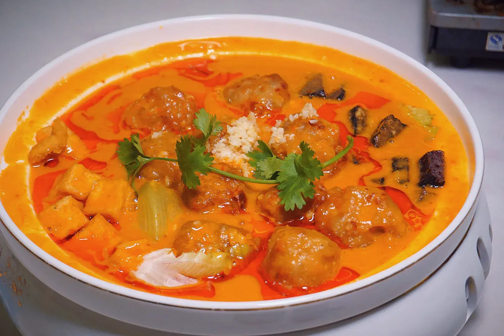 闽南人刻在骨子里的喜爱吃沙茶味道。这里用沙茶汤底煮着入味的大颗狮子头、米血、豆腐干、又能喝到浓郁的沙茶汤底,又能大口吃着狮子头。也是有创意的沙茶吃法呢。