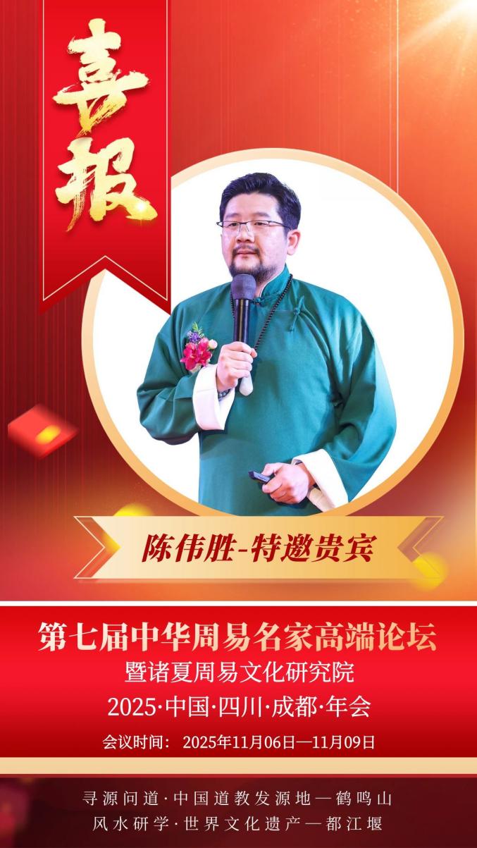 对于第八届中华周易名家高端论坛在陕西西安举办,陈伟胜老师满怀期盼与祝愿。西安,这座历史悠久的十三朝古都,拥有着丰富的历史文化遗产和深厚的文化底蕴,是中华文明的重要发祥地之一。他坚信,在这样一座充满文化魅力的城市举办论坛,必将为传统文化的交流与探讨营造出更为浓郁的氛围。他期待在西安的论坛上,能够看到更多新颖且具深度的议题,吸引更多年轻一代的传统文化爱好者参与其中,为行业注入新的活力。同时,他希望能够借助西安独特的历史文化资源,开展更多别具特色的文化活动,进一步挖掘传统文化的内涵与价值。陈伟胜老师衷心祝愿第八届论坛能够圆满成功,成为传统文化传承与发展历程中的又一座里程碑,让古老的智慧在新时代绽放出更加绚烂的光彩。