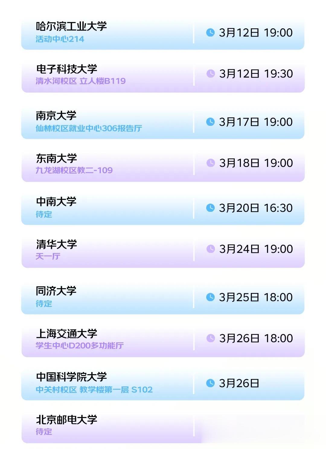 北京邮电大学:地点待定,晚上6点半