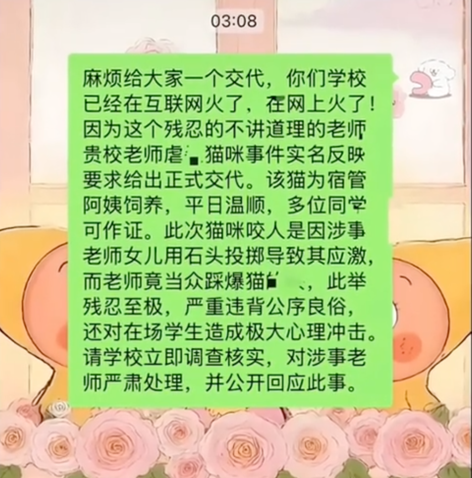 这一脚踩下去的,断送的不仅是一只猫的生命,更是孩子们对成人世界的一部分信任。他们可能会困惑:为什么课堂上教的“仁慈善良”与眼前发生的暴力如此割裂?为什么教师可以不受约束地行使暴力?这些疑问如果得不到妥善疏导,可能在成长过程中演变为对权威的怀疑、对暴力的麻木,或是对生命价值的轻视。