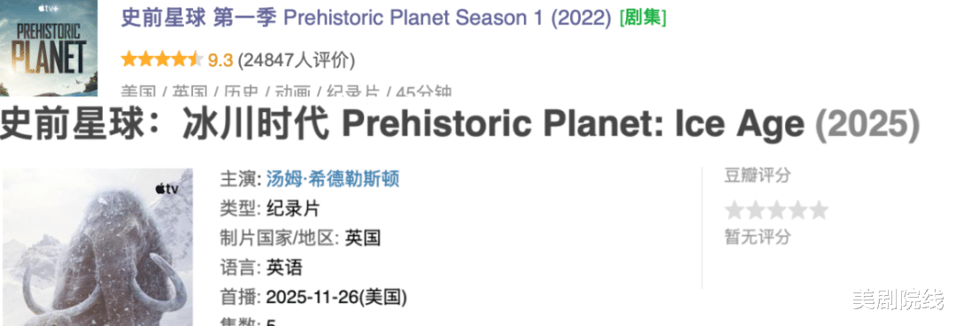 如果前两季《史前星球》让你看见了恐龙最鼎盛的时代,那么这部最新推出的《史前星球:冰川时代》则把你直接带进地球最艰难的时期「冰河期」。