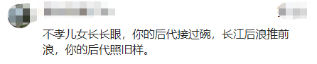 还有位网友也表明,不孝子女长长眼,你的后代结果碗,长江后浪推前浪,你的后代照旧样。