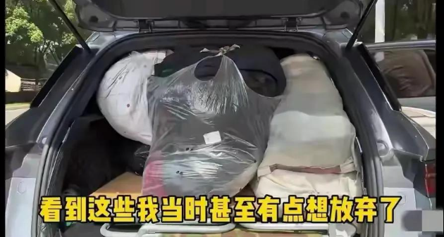 女司机接下单子后,听说老人要求带行李心中很不乐意。然而当她看到老夫妇要求带的行李时,心中不免一阵震撼。有超市买的没用完的油,两人的被子衣物,凳子,如果后备箱允许,他们甚至还要求将电冰箱和洗衣机都装到车里头。