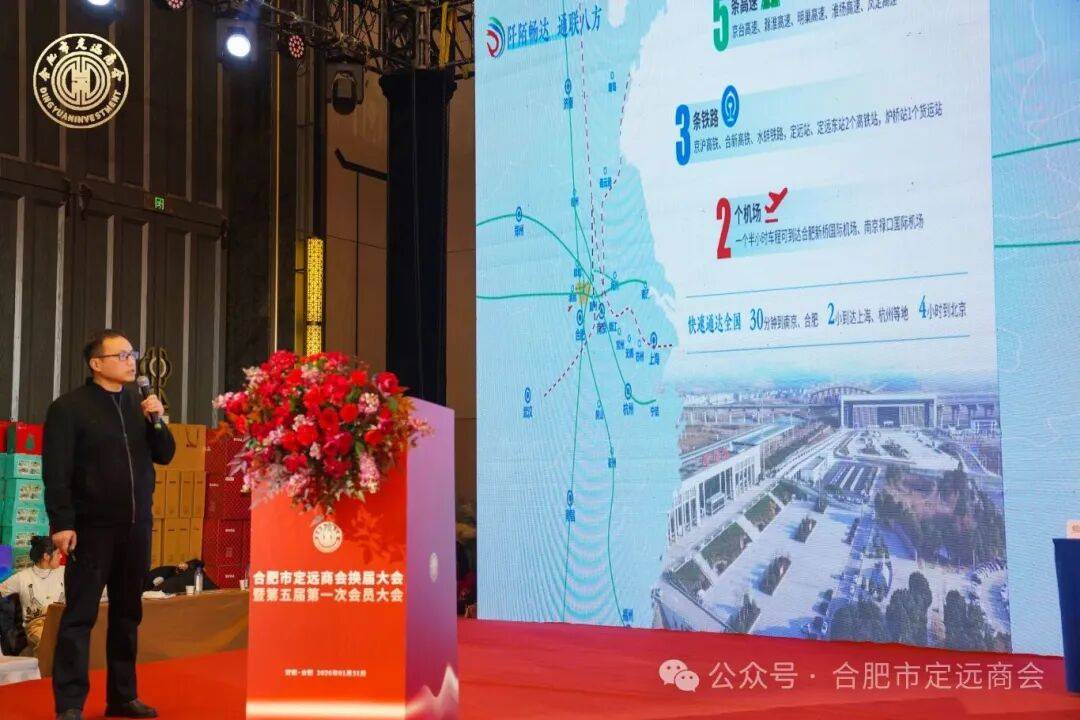 岁末冬藏,序启新章。在合肥与定远双城协同发展的热潮持续涌动之际,合肥市定远商会换届大会暨第五届第一次会员大会于2026年1月31日在合肥盛大举行。大会汇聚800余名在肥定远籍企业家、乡贤代表与各级领导嘉宾,共话桑梓情深,共绘商会高质量发展新蓝图。