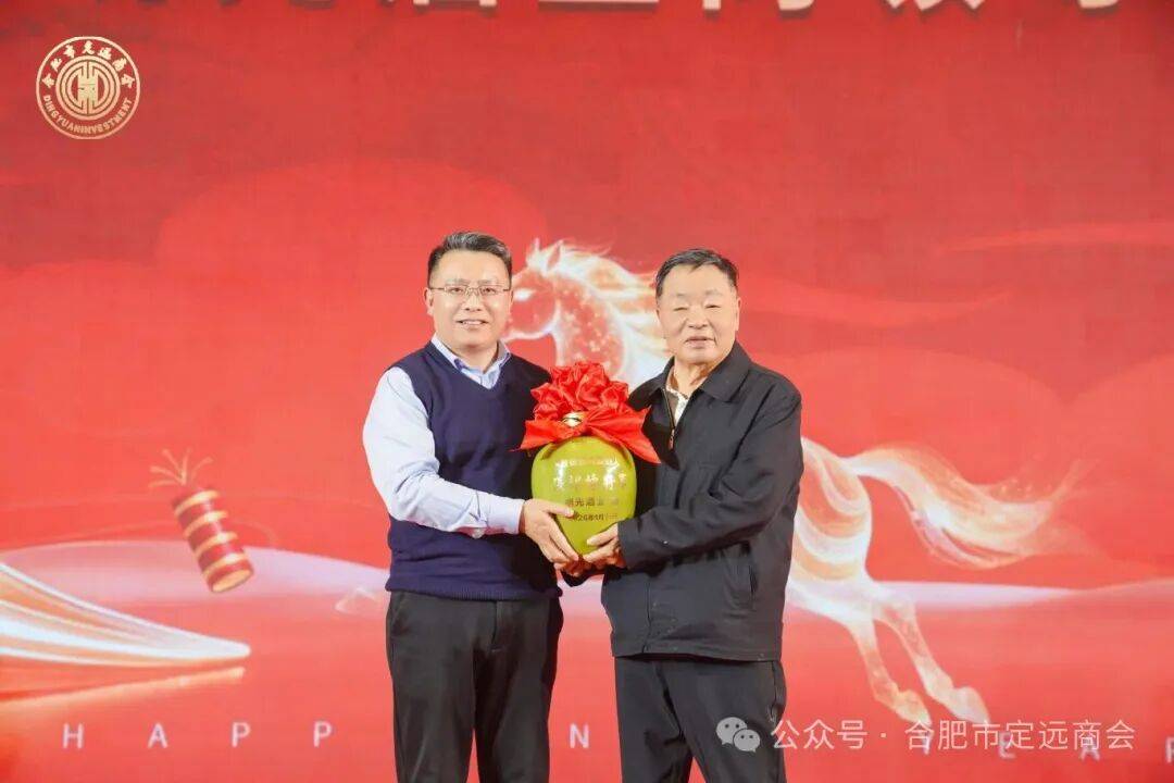 原国防部外事办公室主任张邦栋少将现场寄语商会,他表示,合肥市定远商会自成立以来,始终秉持着团结、奉献、创新的理念,为在肥定远籍企业家搭建了交流合作的优质平台,不仅助力会员企业不断发展壮大,更积极投身家乡建设,展现了强烈的社会责任感与担当精神。希望合肥市定远商会在新征程上再创佳绩。明光酒业代表向张邦栋将军敬赠珍藏版美酒,以酒为媒,传递浓浓的家乡温情。