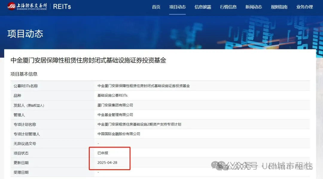 中金厦门安居保租房REIT扩募项目正式申报至上交所