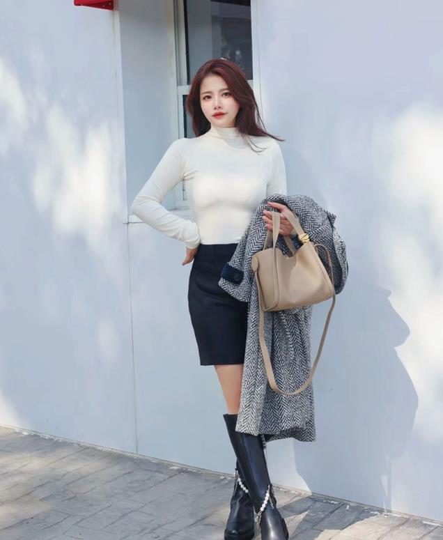长靴与短裙组合,就非常符合这一标准,即时髦又美观,最主要的是两者结合能够显著优化身形比例,让小个子女性通过这种结合也能拥有116的身材比例。