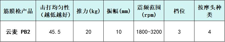 实测表现:云麦PB2内置高扭矩电机,可输出20kg打击力和10mm深度,放松效果非常出色。