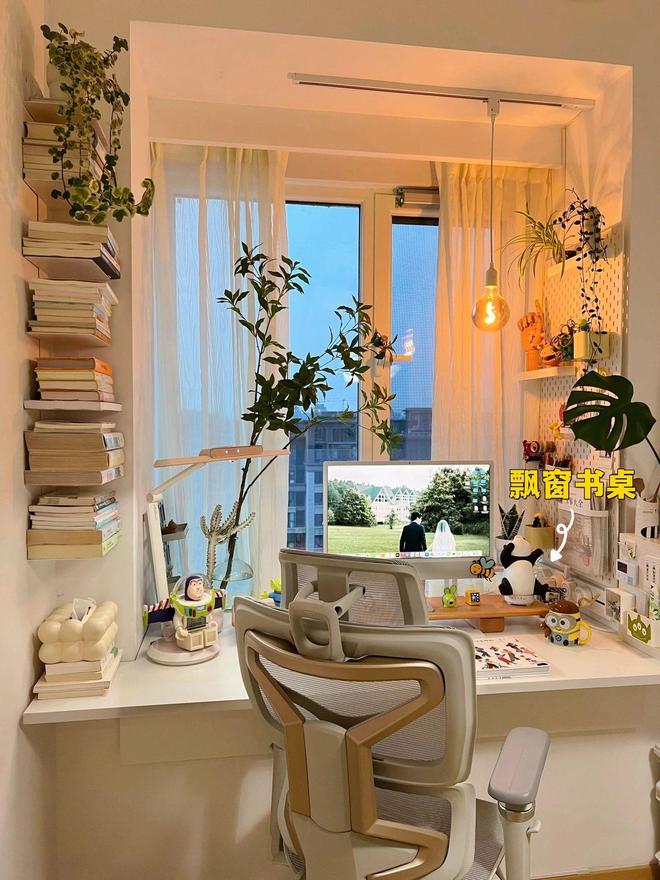 家里的房间比较少,没有单独的空间来做书房,其实可以利用卧室的飘窗,打造一个“迷你办公区”。