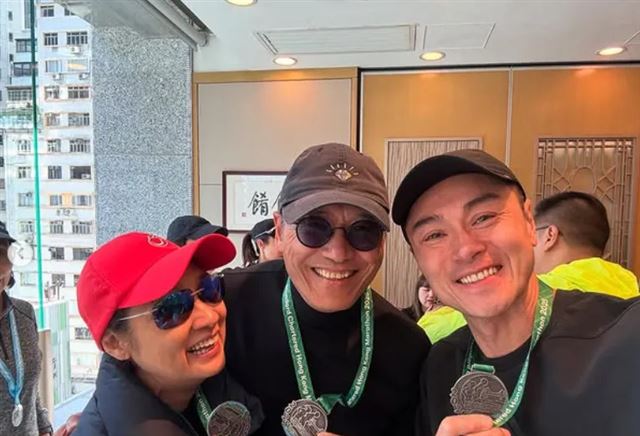 前不久在香港举行的马拉松比赛上,周润发也与跑步团的成员们一同参与,热情积极。