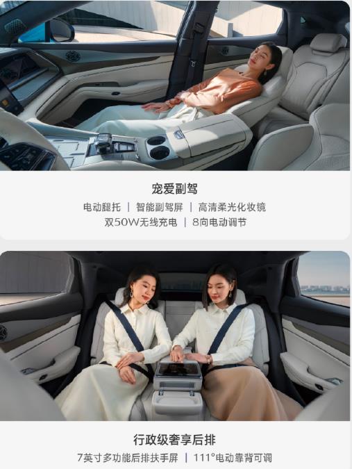 众所周知比亚迪的三电技术是行业领先的,在新款腾势N7身上也有相应体现:腾势N7采用全域800V碳化硅高压平台,搭载91.3kWh刀片电池,CLTC续航最高达702km(后驱版),四驱版续航为630km。同时,支持双枪超充技术,最大充电功率230kW,15分钟补能350km,相比蔚来ES6依赖换电站布局的换电模式和极氪001的单枪快充,腾势N7的兼容性更强,跑长途的时候更为快捷方便,如果作为通勤车也在充电桩资源有限的地区更为适用,入门价也更低。