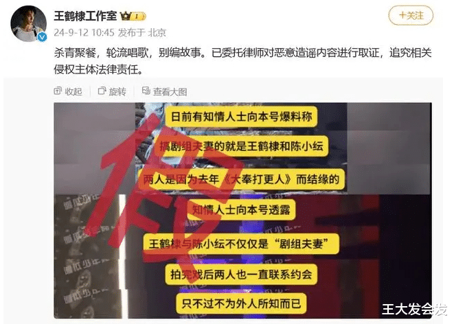 然而,正当舆论沸沸扬扬,满城风雨之际,王鹤棣工作室犹如一道冷静的清流,迅速而坚决地发出了官方声明,宛如夏日午后的雷阵雨,瞬间驱散了所有猜疑的阴霾:“不过一场杀青后的欢聚盛宴,众人轮流献唱,欢声笑语中何来编造的爱情剧本?我们已携手法律之剑,誓将恶意造谣者绳之以法,维护清白,不容侵扰。”字里行间,既展现了对于不实传闻的零容忍态度,也彰显了对艺人隐私的坚定守护。