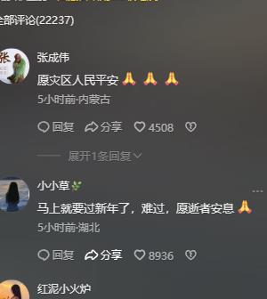 西藏日喀发生地震之后,不少网友纷纷在网上进行留言,有网友表示“愿灾区人民平安”,每当发生这种灾难时,我们最担心的就是灾区人民的安危,祈愿他们能够平平安安。